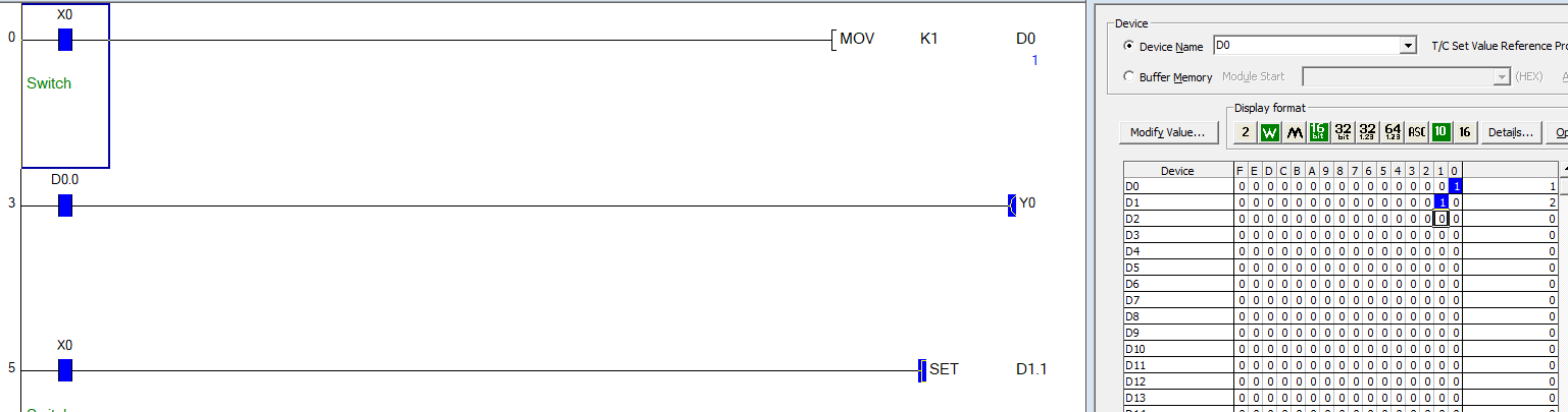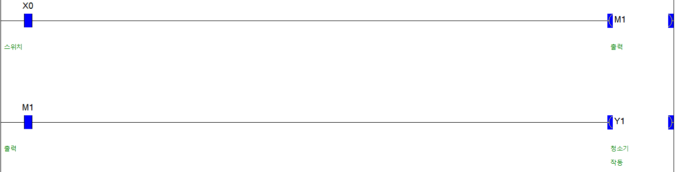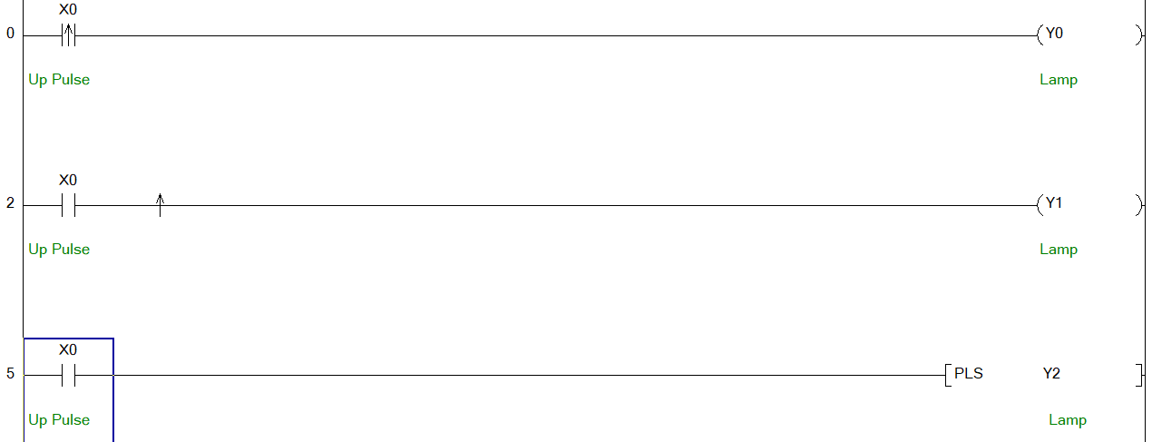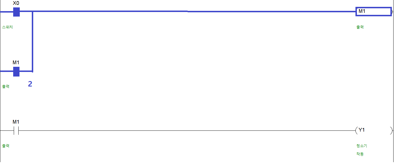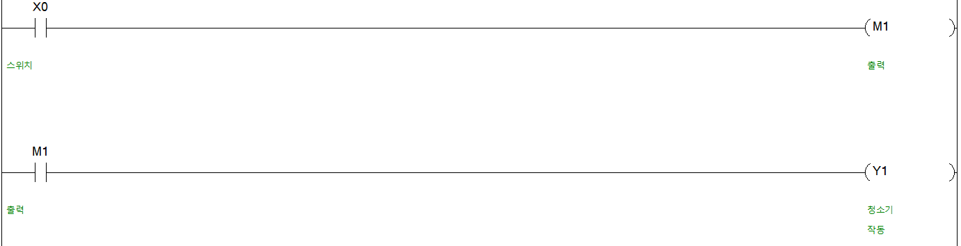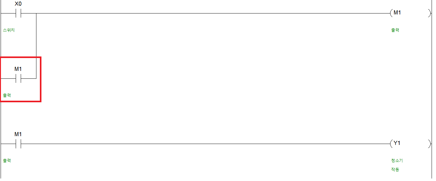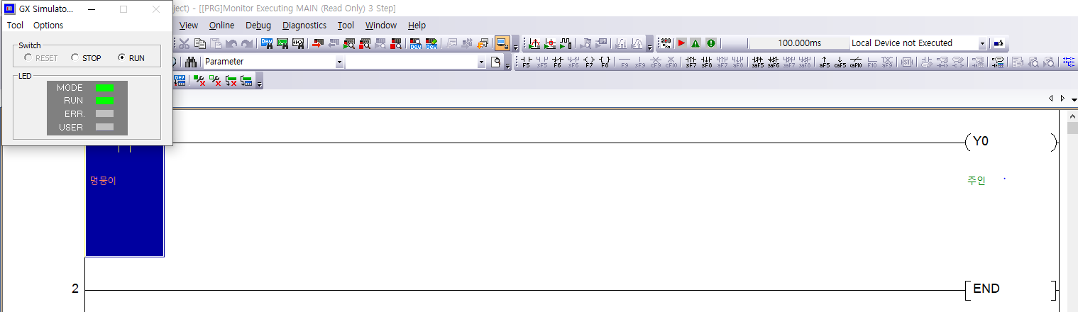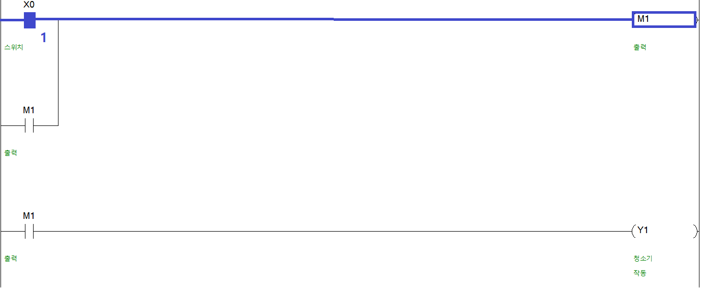 0번 Step을 보시면 X0이 펄스입력으로 들어가면 Set 명령어에 의해 M100이 Set됩니다.