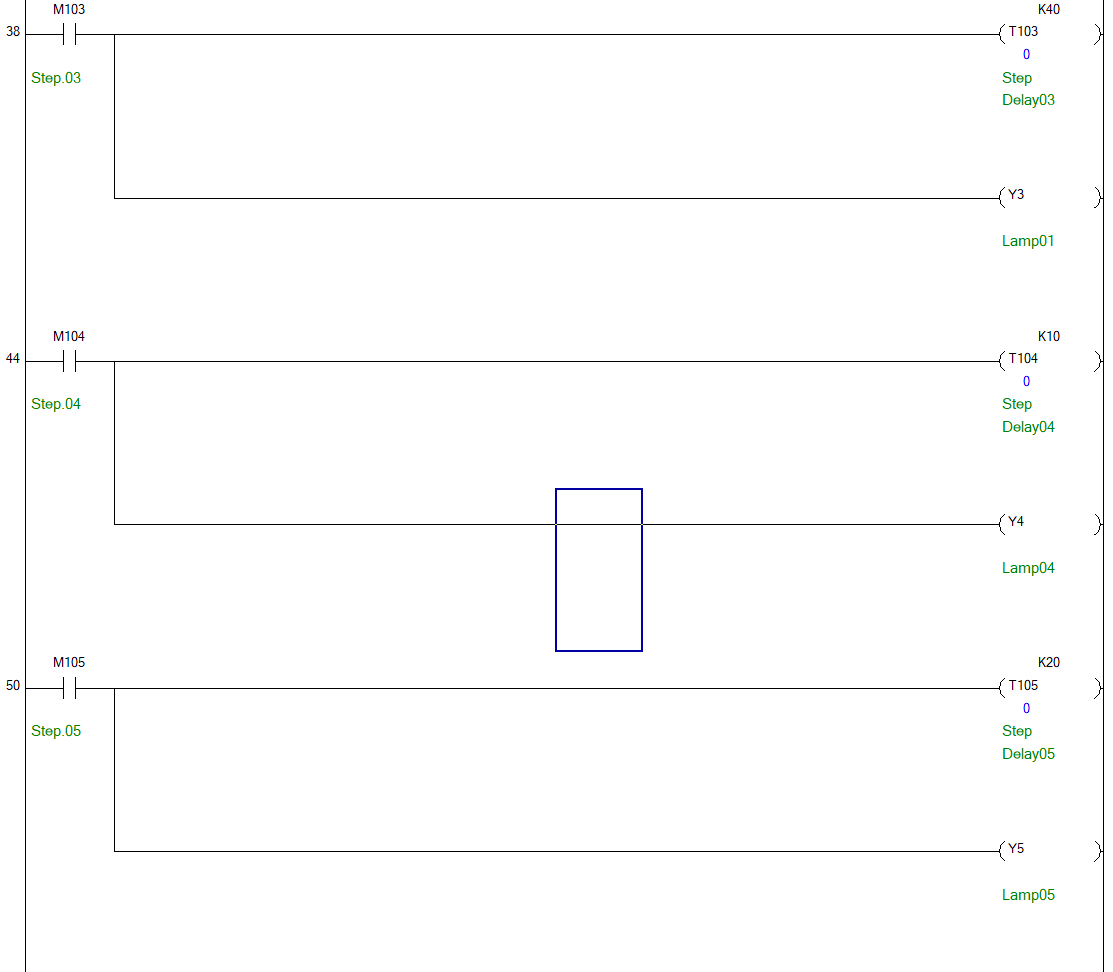 실제로 사용할때는 타이머 부분에 인터락, 즉 Step이 진행 되기 위한 조건을 넣어주면 됩니다.