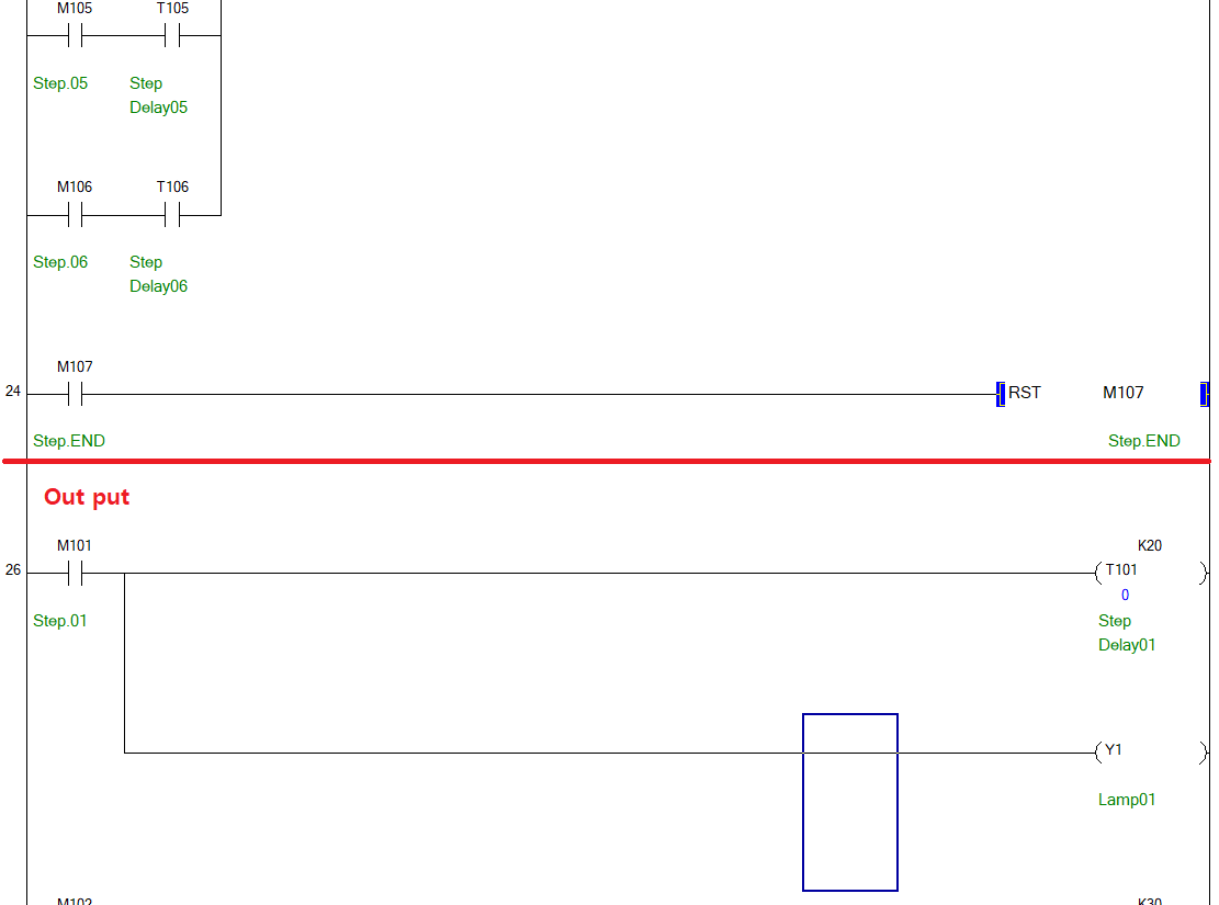 M102로 이동하며 M101은 OFF 됩니다. 이러한 동작을 M106까지 작동하며 M107이되면 스스로를 RST 시켜